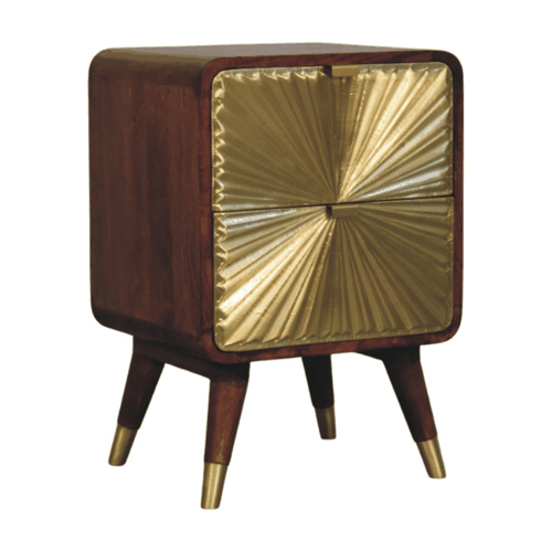 Avora Brass Embossed 2 Drawer Chestnut Nightstand