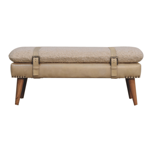 Boucle x Beige Leather Bench