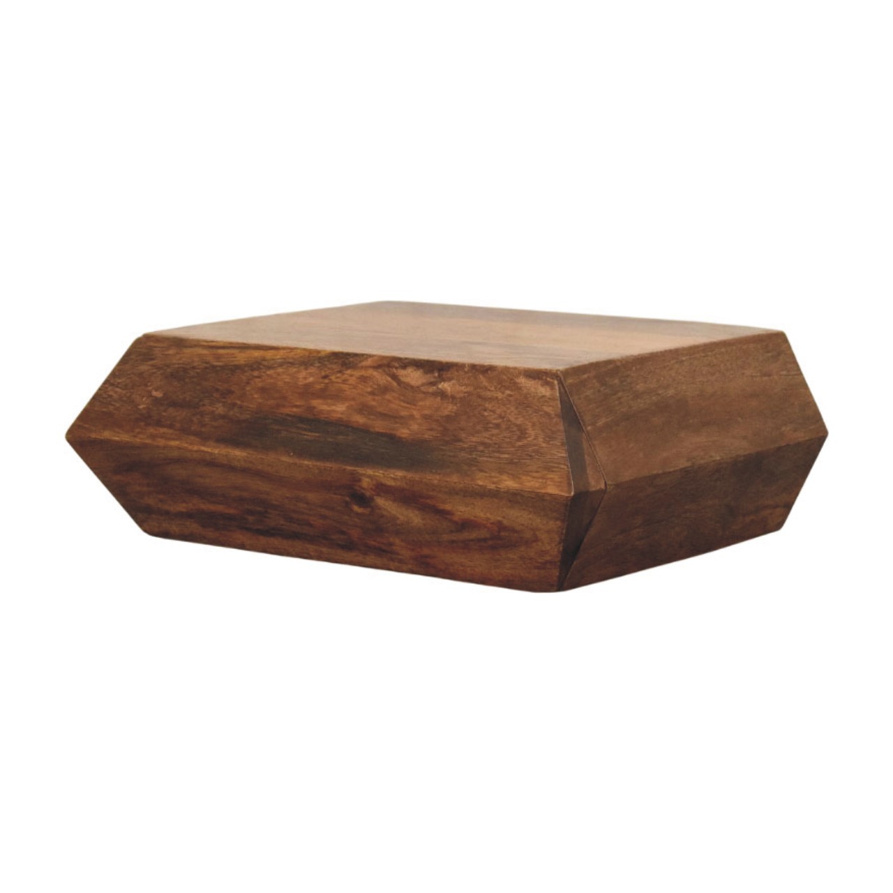 The Prisma Wall-Mounted Unit stands out with its sculptural geometry and refined craftsmanship. Handcrafted from 100% solid mango wood in a radiant Golden Teak finish, it showcases a distinctive faceted design that merges artistry with modern minimalism. The seamless wall-mounted silhouette offers discreet storage while maintaining a clean, floating appearance. Perfect for contemporary interiors, this versatile piece can function as a compact console, nightstand, or media unit — adding warmth, depth, and architectural elegance to any living space.