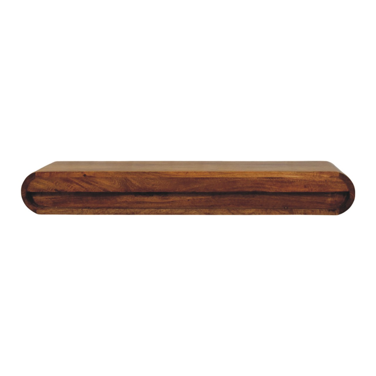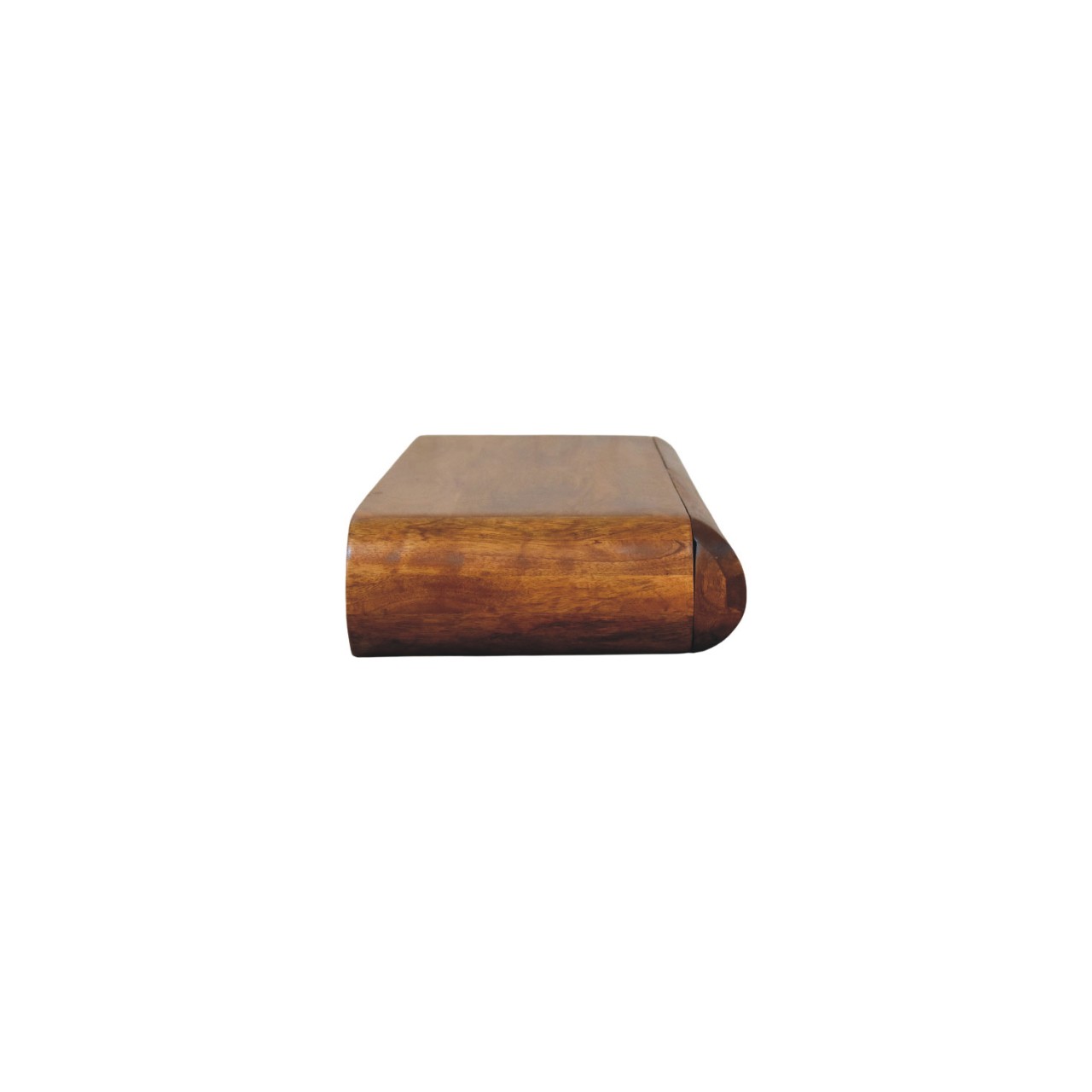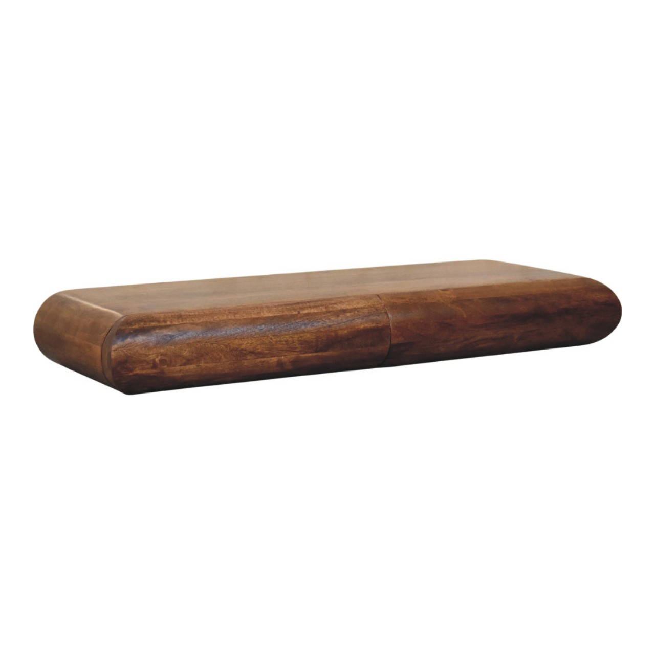 The Solis Wall-Mounted Media Unit is the epitome of contemporary craftsmanship and minimalist design. Handcrafted from 100% solid mango wood in a warm Amber Oak finish, this sleek piece features a beautifully rounded silhouette with three seamlessly integrated drawers for concealed storage. Its floating form enhances the sense of space while maintaining a clean, sophisticated look — ideal for modern living rooms or entertainment areas. Perfectly blending functionality and artistry, the Solis Media Unit elevates your interior with its smooth lines and natural wooden elegance.